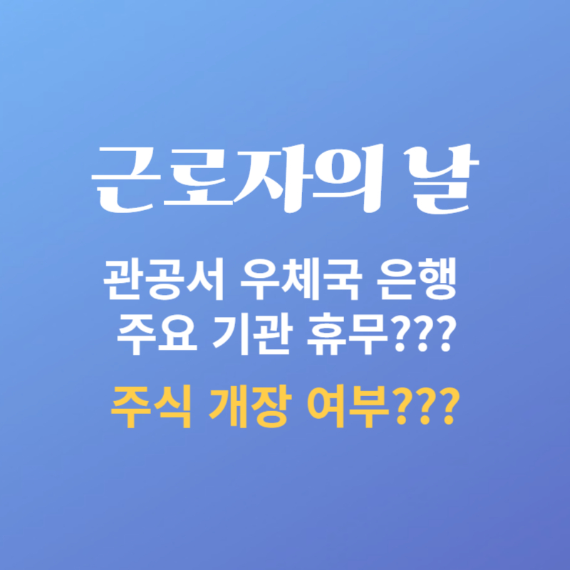 근로자의 날은 근로기준법에 따라 법정유급휴일을 적용받아 업무에서 벗어나 충분한 휴식 시간을 가지시겠지만 또한 주요기관 정상 운영 여부도 궁금하실 텐데요, 이번 글에서는 근로자의 날 관공서, 주민센터, 은행 등 주요 기관 운영 여부와 증권사 주식 개장 여부를 알아보도록 하겠습니다.