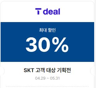 | T딜 | 30% | 04.29 ~ 05.28 | SKT 고객대상 기획전 | |
