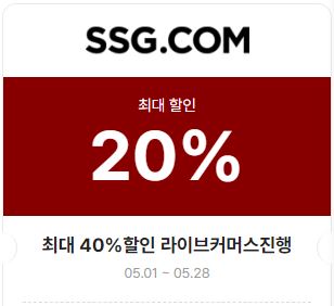 | SSG닷컴 | 20% | 05.01 ~ 05.28 | 라이브커머스 | 최대40%할인 |