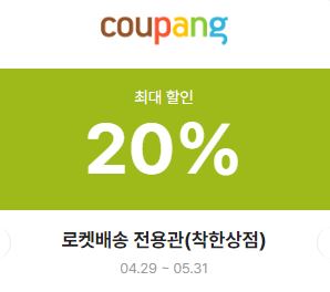 | 쿠팡(로켓배송) | 20% | 04.29 ~ 05.31 | 로켓배송 전용관(착한상점) | |