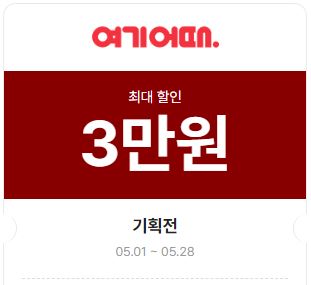 | 여기어때 | 3만원 | 05.01 ~ 05.28 | 기획전 | |