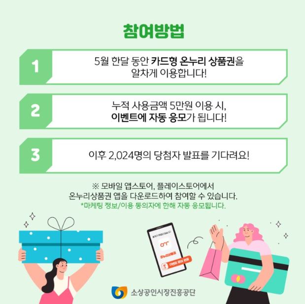 - 충전식 온누리상품권 3만원 이상 이용 시 3천원 지급 및 10만원 이상 경품 지급