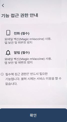 ⑤ 모바일 건강보험증에서 전화를 걸고 관리하도록 허용하시겠습니까? 허용