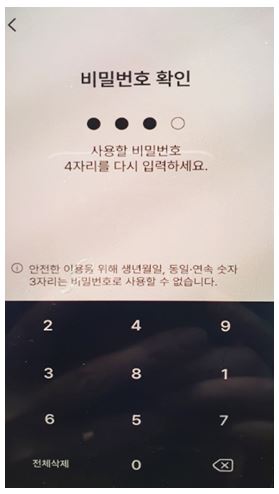 - 모바일 건강보험증을 사용할 때 필요한 비밀번호 4자리를 입력합니다.(본인이 희망하는 숫자 입력)