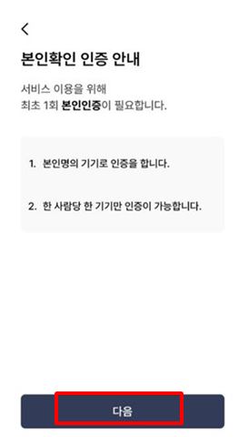 - '본인확인 인증안내'가 나오면 다음을 누릅니다.
