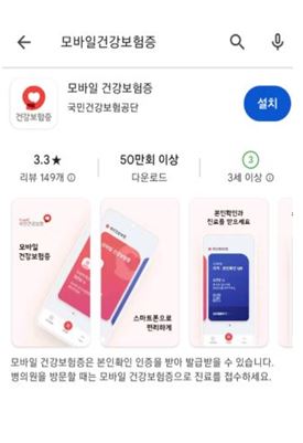 먼저 휴대폰 기종에 맞게 구글 플레이스토어 또는 애플 앱스토어에서 모바일 건강보험증을 검색 후 설치합니다.