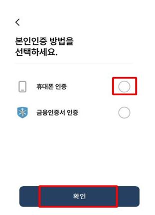 - 본인인증방법을 선택 후 확인버튼을 누릅니다.