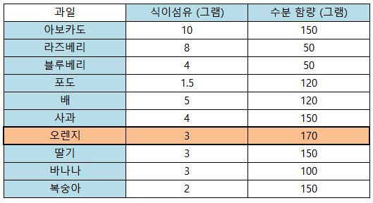 ▷ 오렌지의 영양 성분