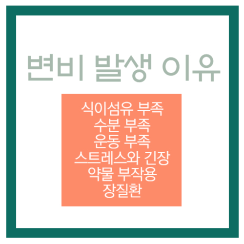 변비는 부족한 식이섬유 섭취, 수분 부족, 운동 부족, 스트레스와 긴장, 약물 부작용, 그리고 장관 질환 등 다양한 요인에 의해 발생할 수 있습니다. 이러한 요인들을 이해하고 적절히 대처함으로써 변비를 예방하고 관리할 수 있습니다.