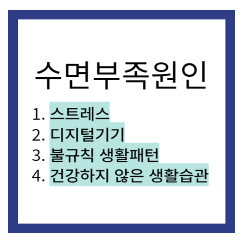 수면 부족의 주요 원인은 다음과 같습니다:
