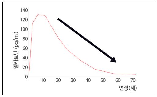 멜라토닌은 뇌 건강뿐만 아니라 심장, 혈관, 간, 폐 등 다양한 기관의 건강과 연관되어 있는 중요한 호르몬입니다. 하지만 현대인들은 수면 부족, 잦은 야근 등 환경적인 요인으로 멜라토닌 부족을 겪기 쉽습니다. 뇌가 노화하면 멜라토닌 분비가 감소한다는 점에서 특히 노년층은 멜라토닌 결핍으로 인한 건강 이상에 주의해야 합니다.