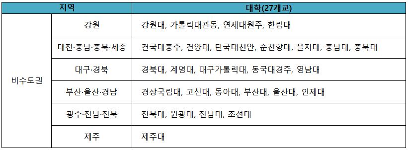지역인재전형으로 지원가능한 권역은 다음과 같습니다.