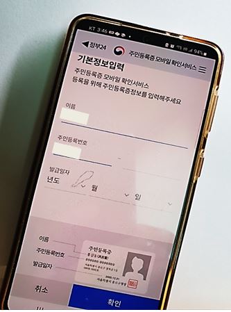 본인 인증을 완료하셨다면 가지고 계신 본인 주민등록증에 대한 기본정보를 입력합니다.
