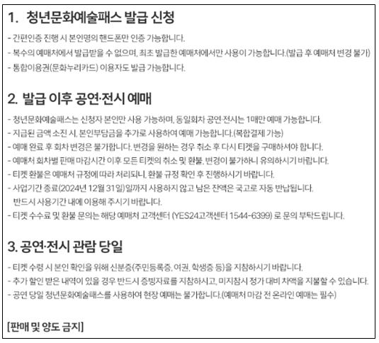 - 최초 발급한 예매처에서만 사용 가능(발급 후 예매처 변경 불가)