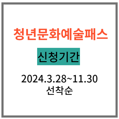 청년 문화예술패스는 3월 28일(목) 오전 10시부터 신청순으로 발급 중으로 지역별로 발급 상황에 따라 조기에 마감될 수 있다고 하니 내용 확인 후 서둘러 발급 신청하시기 바랍니다.