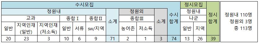 아래 표의 2025학년도 모집인원은 이번 의대증원 발표 전 2025학년도 충남대학교 대학입학전형 시행계획에 따른 모집인원입니다. 정원 내 현 110명에서 200명으로 90명이 증원될 계획입니다.