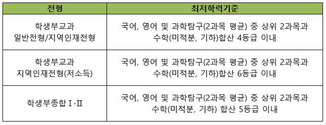 위 교과 / 학생부종합Ⅱ 지역인재전형 조건을 갖추고 아래 사항 중 어느 하나에 해당하는 자