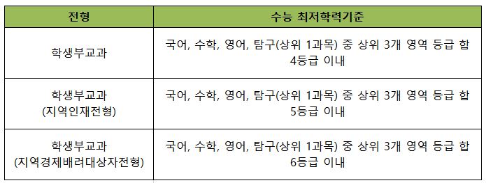 2025학년도 충북대 의대 수능 최저학력기준은 학생부교과, 학생부교과 지역인재전형, 학생부교과 지역경제배려대상전형에 따라 차이가 있습니다.