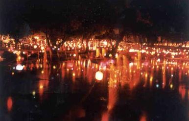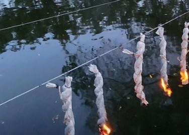 연등과 연등사이에 참나무 숯가루로 만든 낙화를 매달아 이 낙화에 불을 붙여 꽃가루처럼 물 위에 날리는 불꽃놀이입니다. 일제 강점기에 중단되었다가 1985년 복원되어 매년 행사를 실시하여 함안군민의 안녕을 기원하고 있습니다.