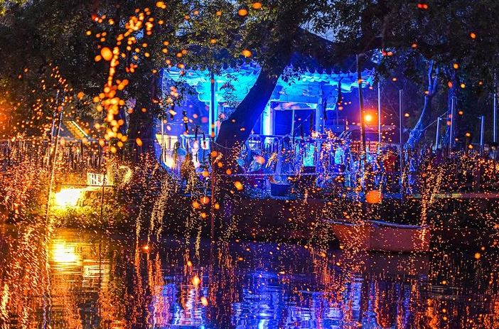 하얀 저고리와 바지를 입고 뗏목을 타고 연못위에 낙화봉을 매다는 모습부터 횃불을 이용해 낙화봉 하나하나에 점화하는 모습 또한 큰 볼거리입니다. 약 2시간 정도 연못 위를 수놓는 불꽃의 향연은 많은 관람객들에게 아름다움을 선사합니다.